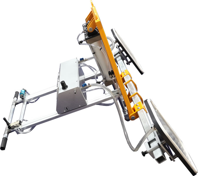 This vacuum lifter is designed to lift smooth or rough marble and granite slabs. Pneumatic vertical-horizontal tilting 0 to 90°.